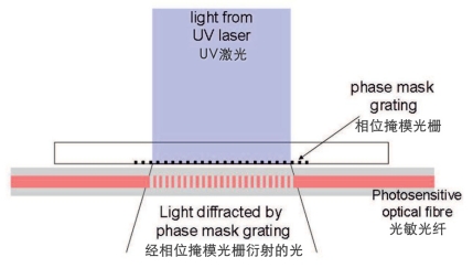 相位掩模版用於在暴露於紫(zǐ)外光束時產生幹涉圖案,從而引起光纖芯折射(shè)率的調製。