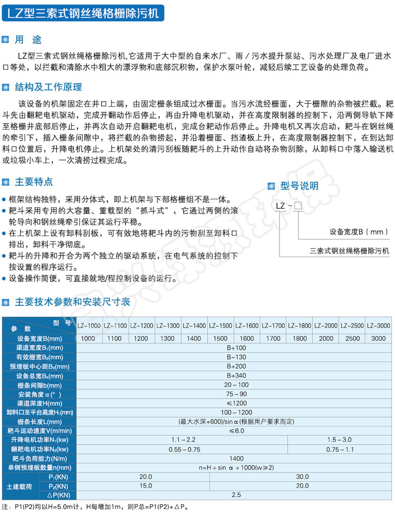 LZ型(xíng)三索式鋼絲繩格柵除汙機