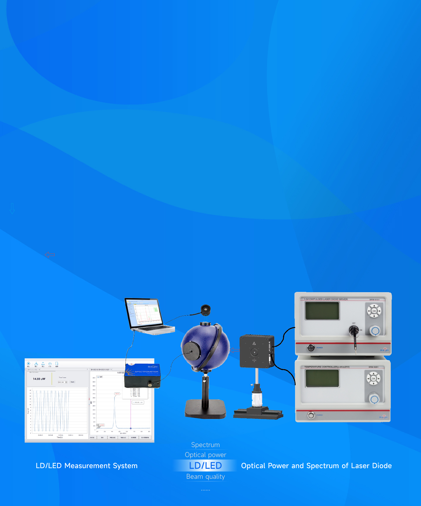Optical characteristic parameter measurement instruments, such as Spectrometer, Radiometer/Photometer, Laser power meter, Laser energy meter, pulse width detector, Beam quality analyzer/ Beam profiler, etc.